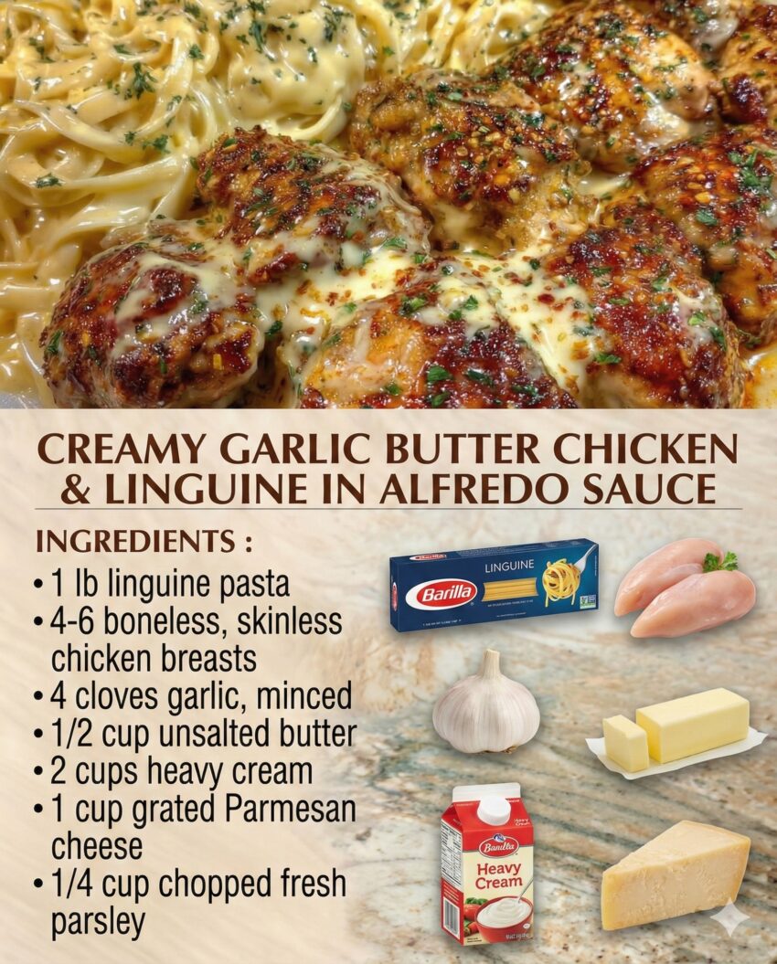 Here’s a detailed recipe for Creamy Garlic Butter Chicken & Linguine in Alfredo Sauce—rich, comforting, and full of flavor: