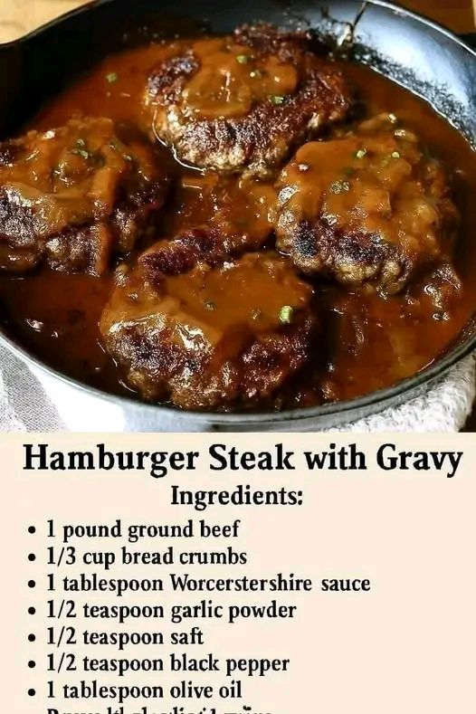 Oh yes—classic comfort food! Juicy hamburger steaks smothered in rich onion gravy. Here’s a reliable recipe: