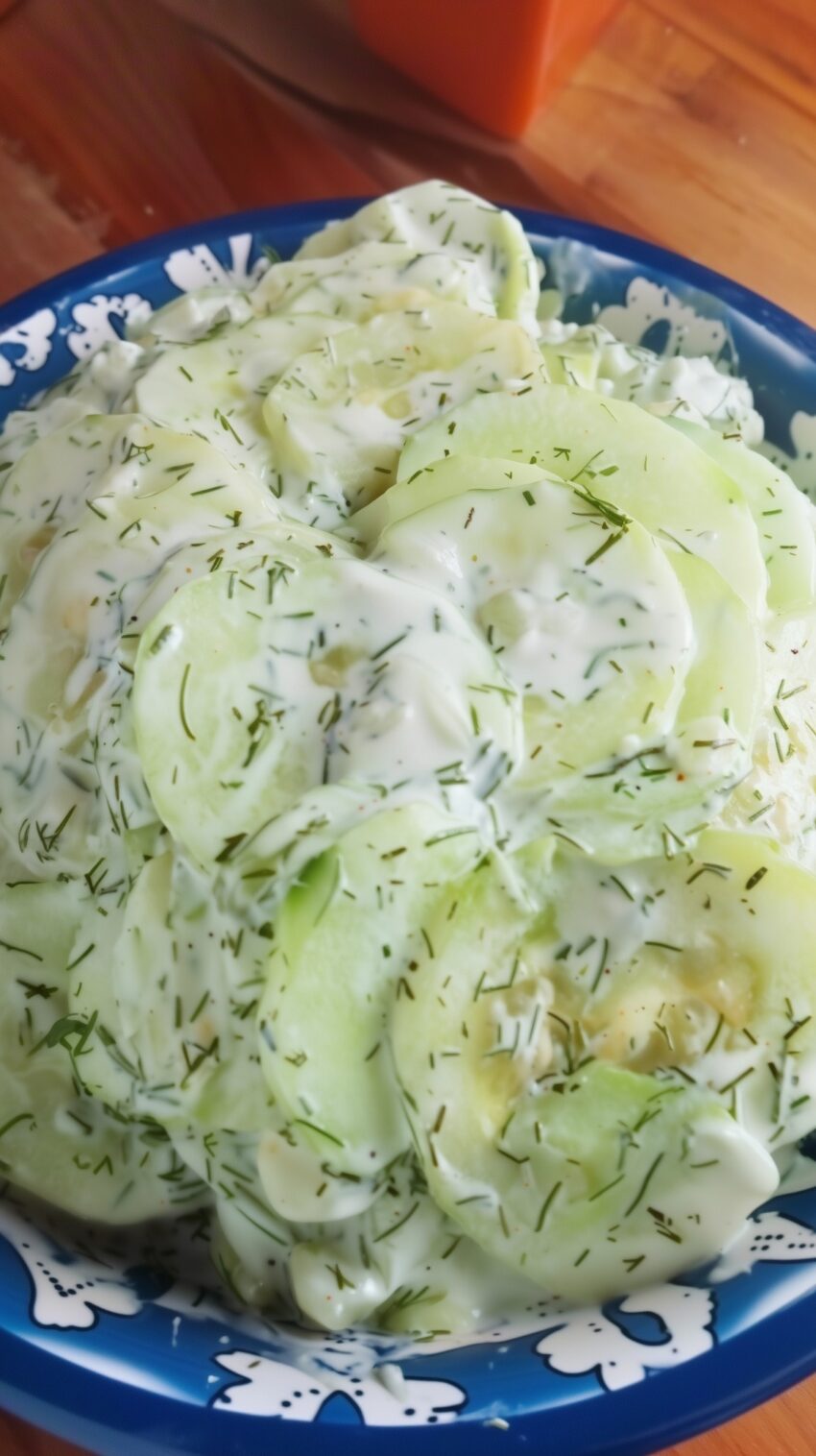 Ah, Mizeria — this is a classic Polish cucumber salad! It’s light, creamy, and tangy, usually served as a side dish with meats, pierogi, or potatoes. Super refreshing and very easy to make.